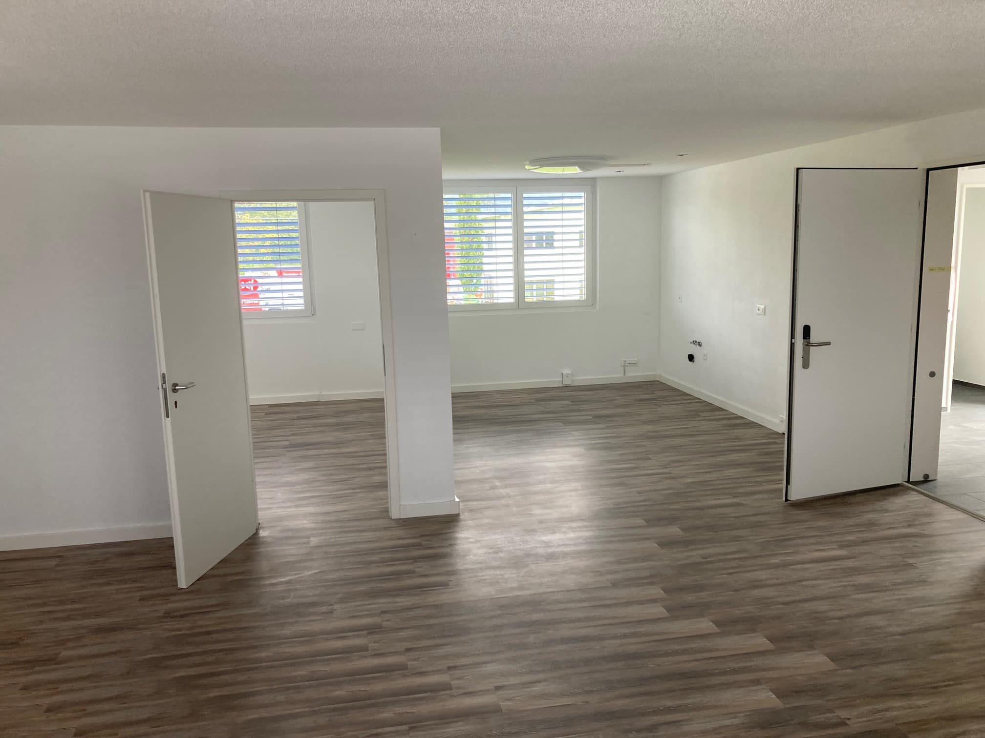108 qm verteilt auf ein Grossraumbüro und ein Vorgesetztenzimmer. 2 Bäder und Toiletten.